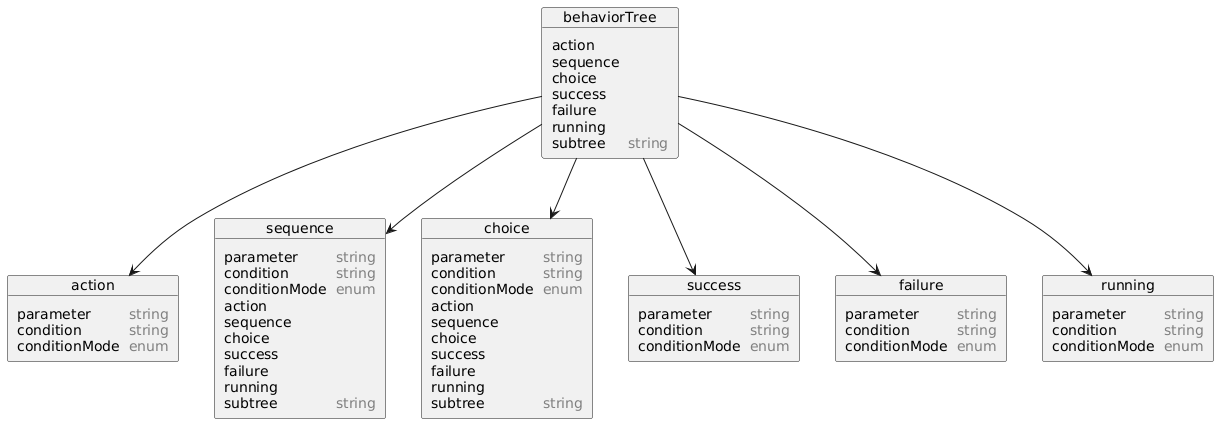 | subtree | Load behavior tree using path from tag text content. Subtree is added to the behavior tree as a sequence rule containing the loaded behavior tree | 0..N | - |